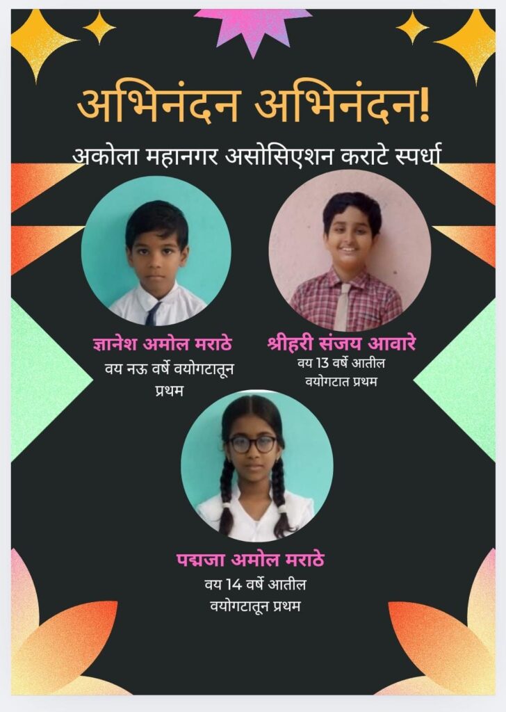 महाराष्ट्र राज्य कराटे संघटनेशी संलग्न असलेली अकोला महानगर असोसिएशन तर्फे दिवेकर कराटे व्यायाम शाळा, जठारपेठ अकोला येथे कराटे स्पर्धेचे आयोजन करण्यात आले. 🥋✨
