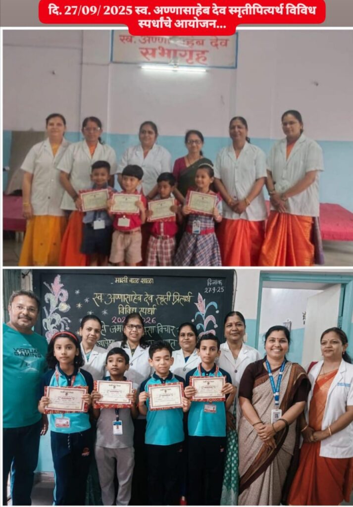 माझी बाल शाळेच्या वतीने स्व. अण्णासाहेब देव स्मृतिप्रीत्यर्थ विविध स्पर्धांचे आयोजन