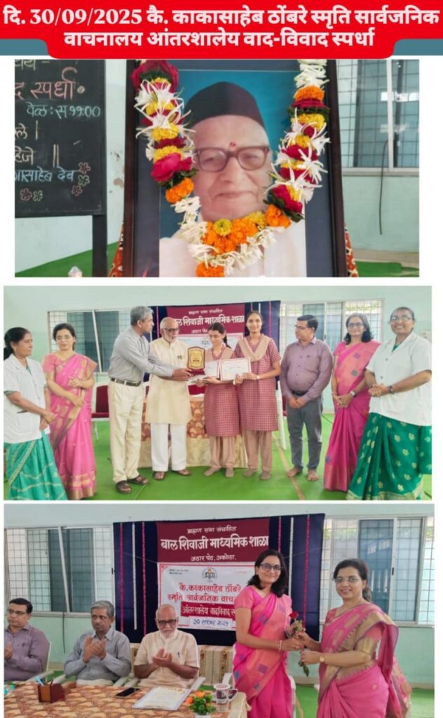 बाल शिवाजी माध्यमिक शाळा, अकोला आणि कै. काकासाहेब ठोंबरे स्मृती सार्वजनिक वाचनालय यांच्या संयुक्त विद्यमाने वीर सावरकर सभागृहात वादविवाद स्पर्धा पार पडली.