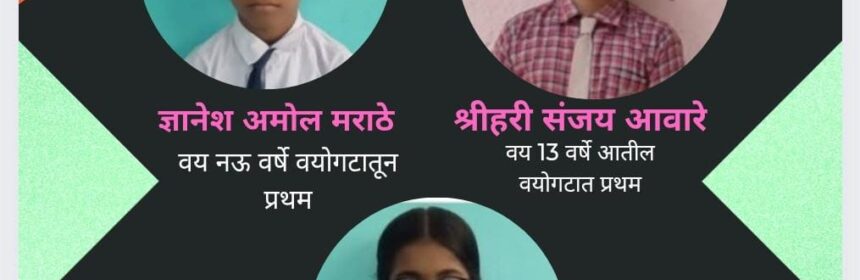 या स्पर्धेत बाल शिवाजी शाळेतील विद्यार्थ्यांनी उत्तम कामगिरी करत प्रथम क्रमांक पटकावला आहे 🥇 वर्ग 3 री – ज्ञानेश अमोल मराठे👉 (नऊ वर्ष वयोगटात प्रथम क्रमांक)🥇 वर्ग ६ वी – पद्मजा अमोल मराठे👉 (14 वर्ष वयोगटात प्रथम क्रमांक) 🥇 वर्ग ५ वी – श्रीहरी संजय आवारे👉 (१४ वर्षे आतील गटात प्रथम क्रमांक) या तिघांचीही छत्रपती संभाजीनगर येथे होणाऱ्या राज्यस्तरीय स्पर्धेकरिता