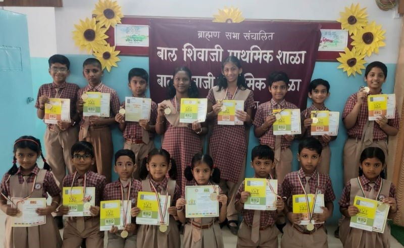 Bal Shivaji Primary School, Jatharpeth, Akola has once again achieved remarkable success in national level Olympiad examinations. In the SOF National Science Olympiad (NSO), 7 students from Classes 1 to 7 have won Gold Medals for their excellent performance.